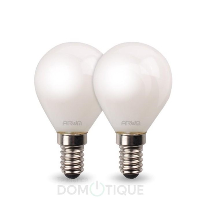 Tendance Domotique vous propose un lot de 2 Ampoules LED E14 Dépolies 4.5W Eq 40W P45.