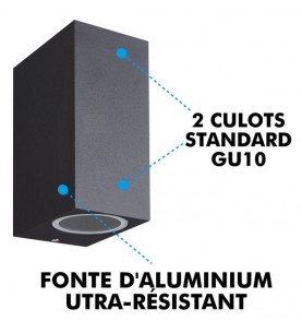 Tendance Domotique vous propose une applique noire extérieure, MANATHAN, Double faisceau GU10, IP44.