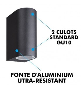 Tendance Domotique vous propose une applique noire MONICA double faisceau GU10 IP54.