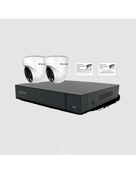 Tendance Domotique vous propose un kit IP smart IPDKIT004S05PB/FR, il est composé d'un enregistreur vidéo de réseau IPNVR004S08PB, deux caméras IPDCAMS05ZB, un panneau "Zone sous surveillance vidéo privé" de dimension 300x210mm 45302C et un panneau "Zone sous surveillance vidéo publique" de dimension 300x210 mm.