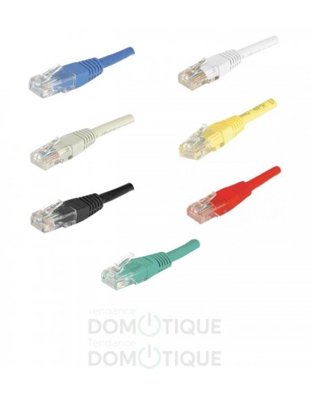 Tendance Domotique vous propose un cordon RJ45 catégorie 6 U/UTP, ce cordon réseau RJ45 catégorie CAT.6 Classe E, vous permet de transmettre des données à des fréquences jusqu'à 250 MHz, et à des débits jusqu'à 1 Gbps (voire jusqu'à 5 Gbps avec des équipements actifs conformes IEEE 802.3bz).