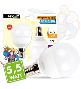 Tendance Domotique vous propose un lot de 2 Ampoules LED E14 P45 5,5W Eq 40W Blister.