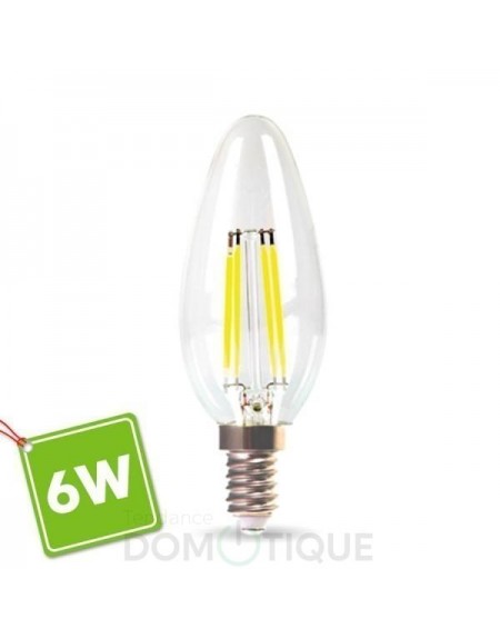 Tendance Domotique vous propose une ampoule LED E14 6W Eq 60W filament.