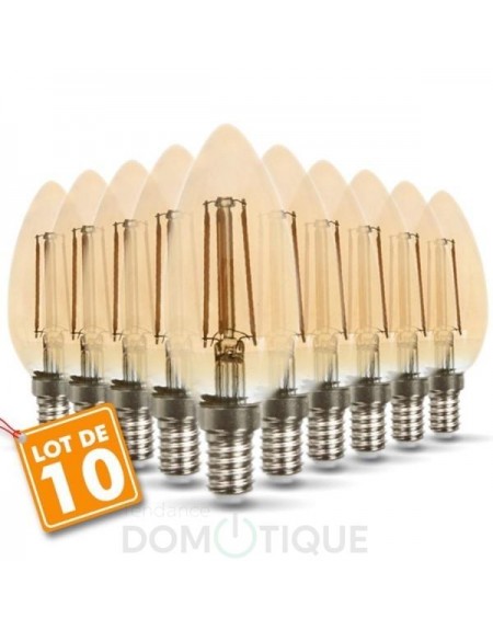Tendance Domotique vous propose un lot de 10 Ampoules LED E14 ambrée 4W eq 40W 350lm.