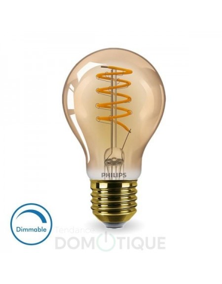 Tendance Domotique vous propose une ampoule LED PHILIPS MASTER Value E27 A60 filament 4W Ambrée Dimmable.