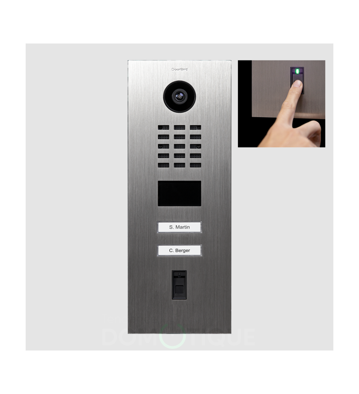Tendance Domotique vous propose un interphone WI-FI vidéo IP D2102FV, avec lecteur d'empreintes pouvant gérer jusqu'à 50 empreintes digitales, boîtier disponible séparément.