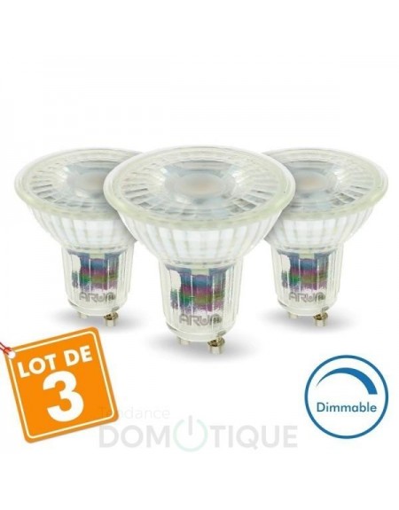Tendance Domotique vous propose un lot de 3 Ampoules LED Pro GU10 5W Dimmable 420 Lm Eq 50W.