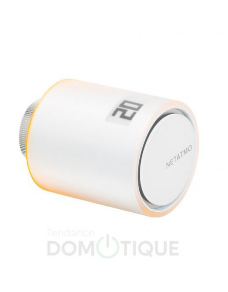 Tendance Domotique vous propose la tête Thermostatique Intelligente Additionnelle Netatmo, en complément du Thermostat Intelligent, du Starter Pack Têtes Thermostatiques Intelligentes ou du Smarther with Netatmo permet de choisir la température de chaque pièce, à tout moment.
