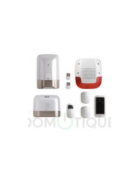 Tendance Domotique vous le Pack alarme 8 zones sans fil connecté avec transmetteur GSM et détecteur de levée de doute vidéo.