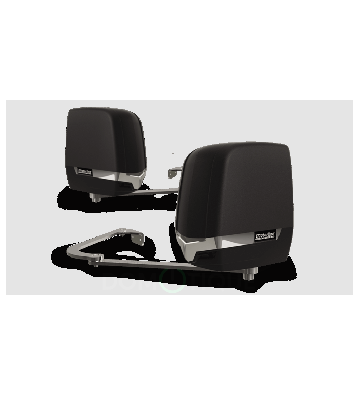 Tendance Domotique vous propose le kit TELICA pour vos portails battants pouvant aller jusqu'à 2300 mm par vantail sans serrure ou jusqu'à 3000 mm avec serrure. Le kit est composé de deux moteurs articulés 24 Vdc, une centrale électrique MC62 incorporé dans le moteur, deux télécommandes FALK, un jeu de cellules MF30, un transformateur TRF80VA-230V/110V et des accessoires pour l'assemblage.
